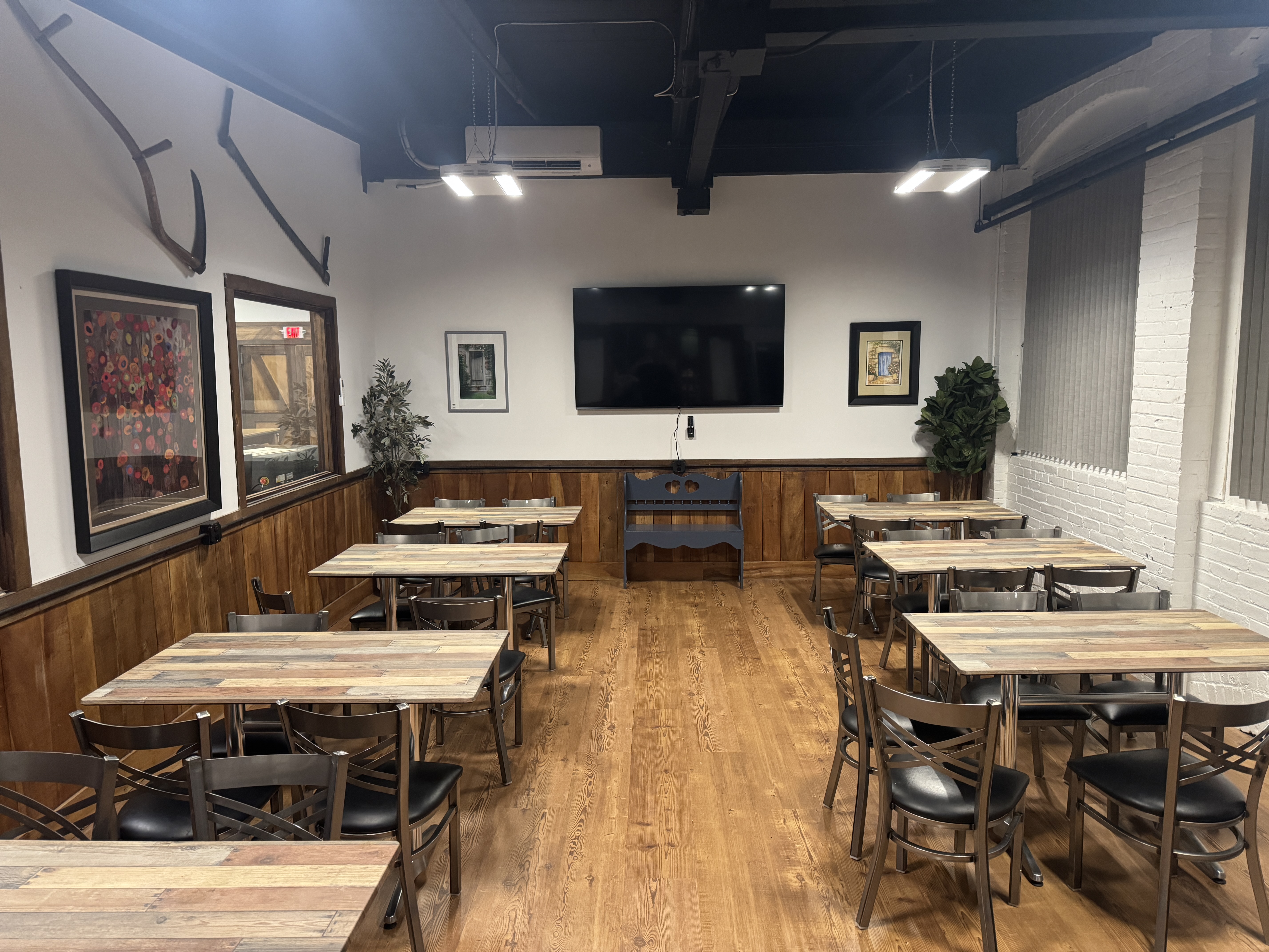 The Seymour Room is our largest and most flexible venue, designed for bigger crowds and bold ideas. Perfect for classes, comedy nights, live music, art shows, vendor events, or private celebrations, this space captures the industrial heritage of our building while providing the open layout and versatility needed for creative expression. With room for staging, flexible seating arrangements, and easy access for setup, the Seymour Room gives you the freedom to bring your vision to life — whether you’re entertaining, teaching, or celebrating.