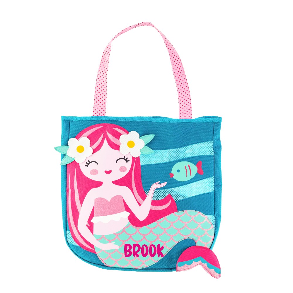 CAN BE PERSONALIZED Venture out for some fun in the sun with one of our adorable shaped beach totes. Each tote includes a set of 5 sand toys and are designed with embroidered appliques, screen printed accents and have mesh backing to keep all the sand at the beach. These beach totes are also Easter Bunny approved and are perfect for gifting! Applique with embroidery and screen printed accents. Mesh back 5 sand toys included Approx. 15”x 13” (38.1cm x 33cm) Tote made from durable 600D polyester. Toys made from PP plastic Wipe clean with damp cloth