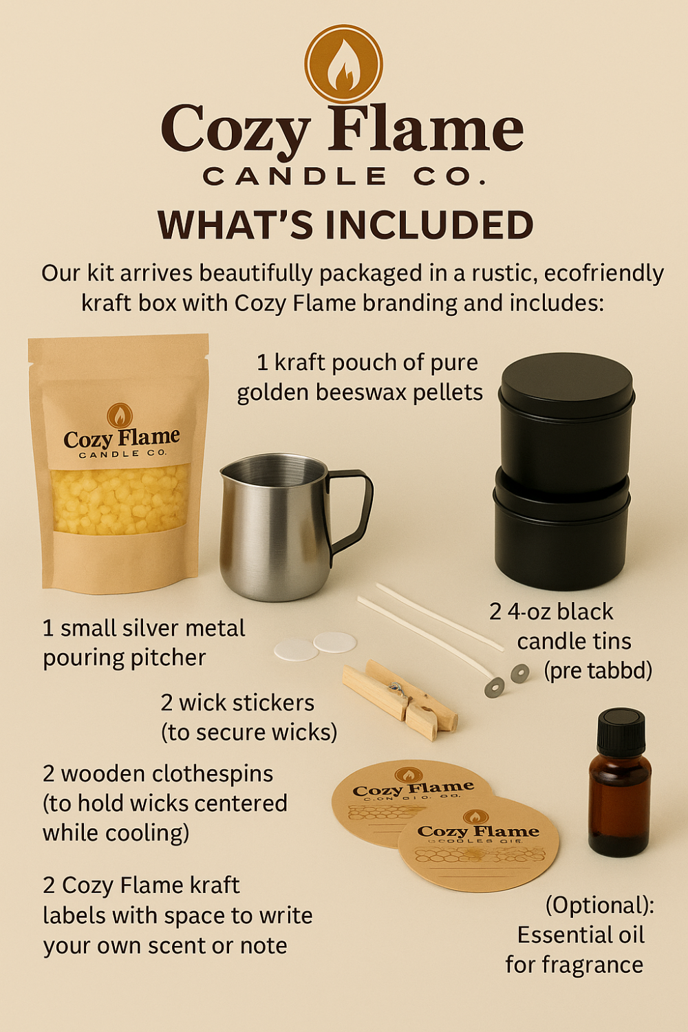 This DIY candle Kit is Perfect for beginners and seasoned crafters alike. The kit comes with everything you need to create two 4 oz beeswax candles in sleek black tins. The unscented version is perfect for those with allergies or sensitivities to scents and the beeswax still emits a light honey like aroma. This DIY kit makes a thoughtful gift for birthdays, holidays, housewarmings, or a cozy night in. It’s eco-friendly, creative, and produces beautiful beeswax candles that are healthier, longer-burning, and cleaner than any store-bought option.