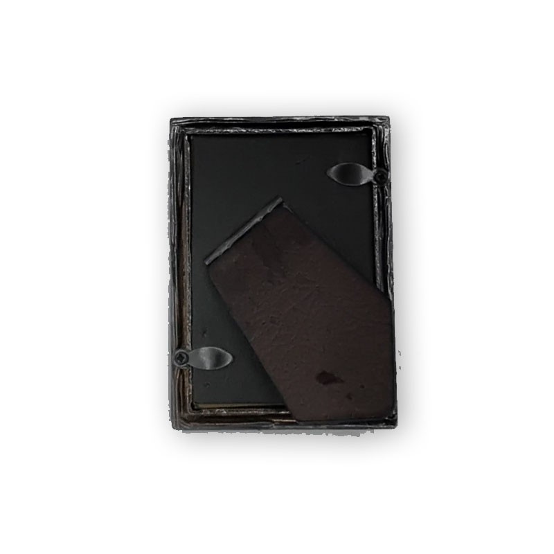Jewelry Art | Xmas Tree & Snowman | pewter decorative metal frame | freestanding | black velvet | silver, crystal | 2-1/2" W x 3-1/2" H x 1/4" T | 4 jewels, chains **items may show slight wear as they are vintage and/or upcycled**