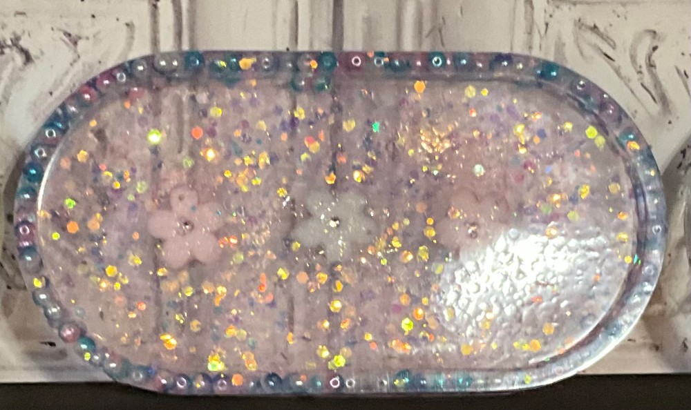 Resin trinket tray on a desk for paper clips or a dresser for rings and earrings