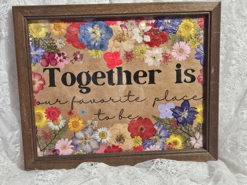 9x11.5" - "Together is my favorite place to be" sign with dried flowers.