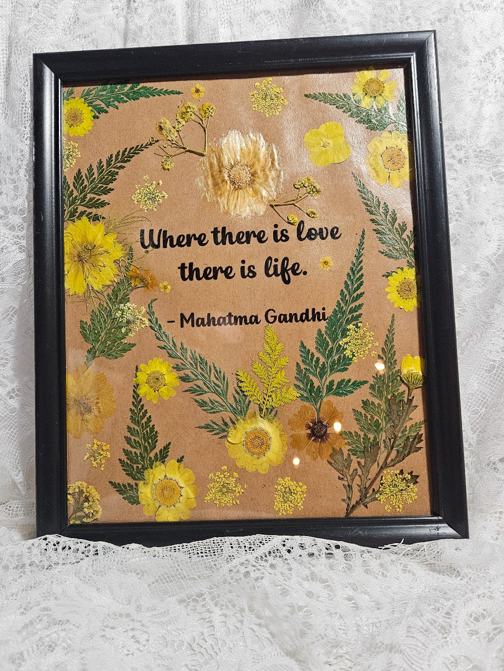 8.5x11" - "Where there is love there is life" dried flower sign.