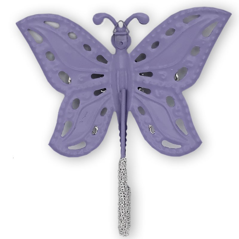 Jewelry Art | Butterfly Hook Purple | metal | hanging | purple, silver | 7" W x 7-1/2" H | 7 pieces jewelry + chain **items may show slight wear as they are vintage and/or upcycled**