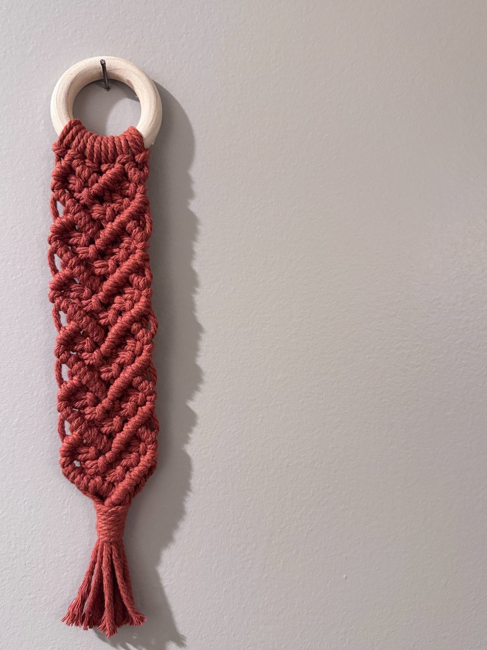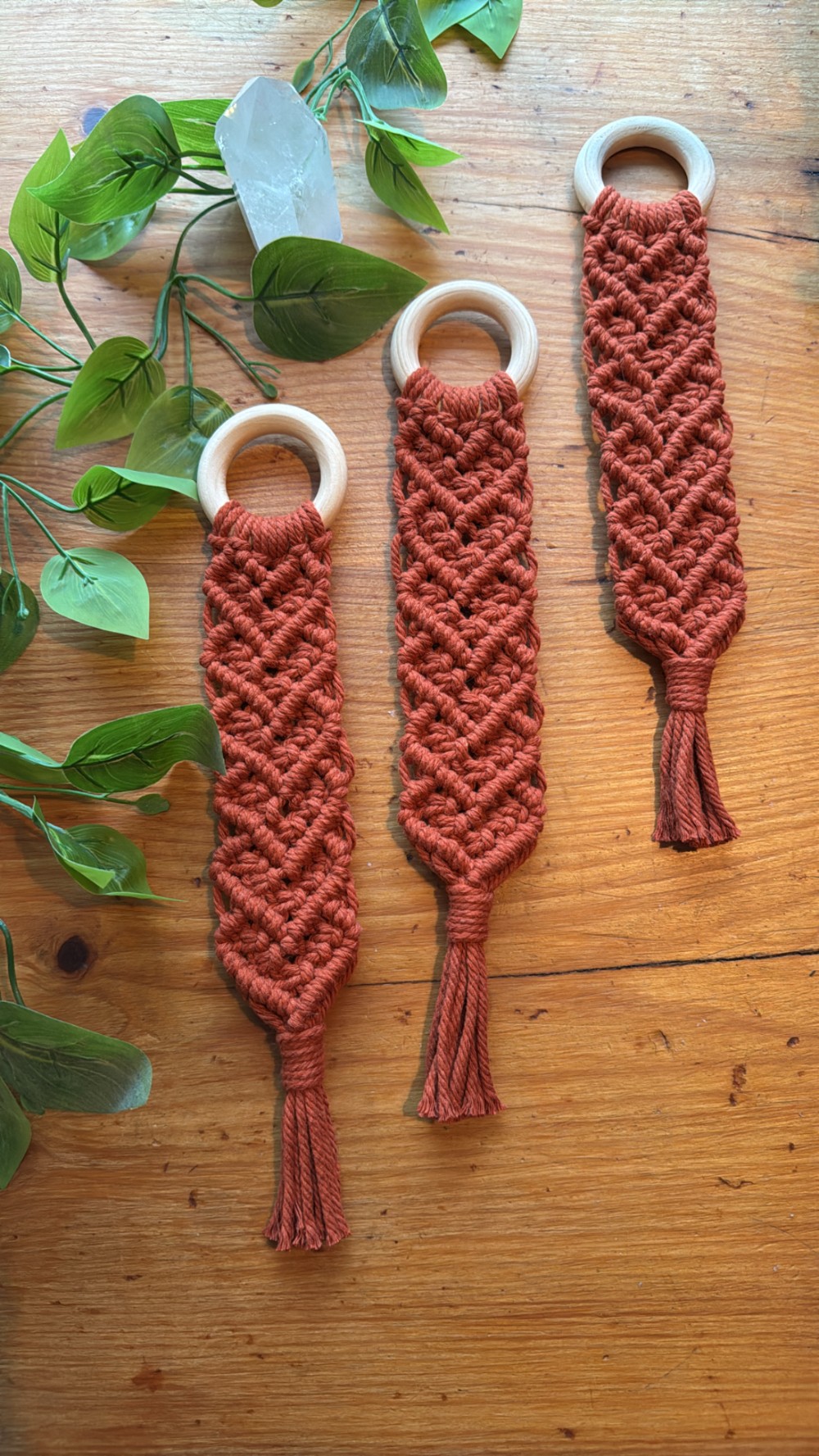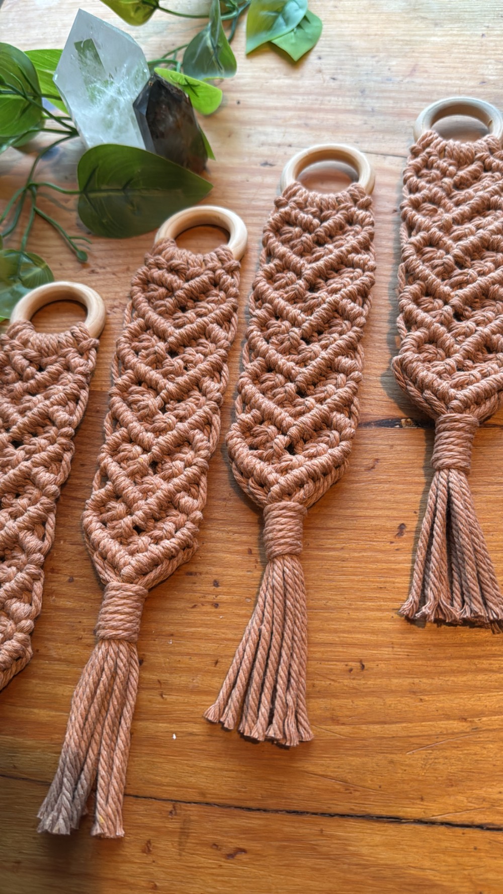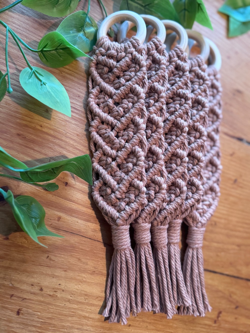 Infuse your area with the warmth & love of this handcrafted macrame wall hanging. Designed with intricate knotwork that forms a line of woven hearts, this piece symbolizes connection, mindfulness, & sacred love. Featuring 100% cotton cord with wooden ring for easy hanging. Each piece is hand crafted with care then infused with love & light, making it truly unique.