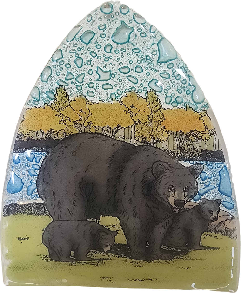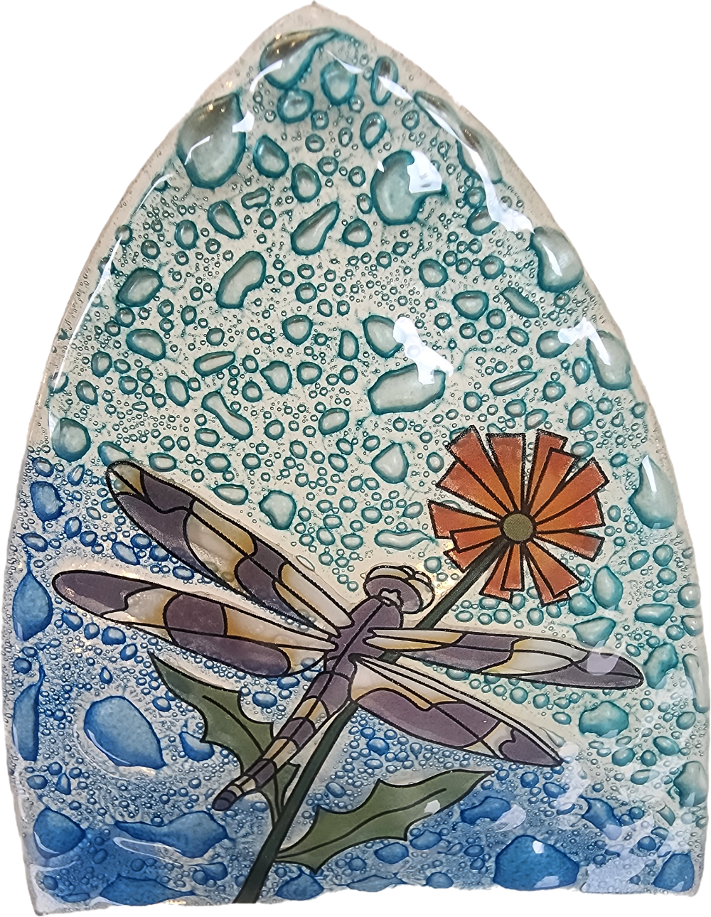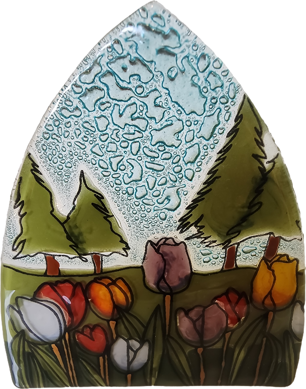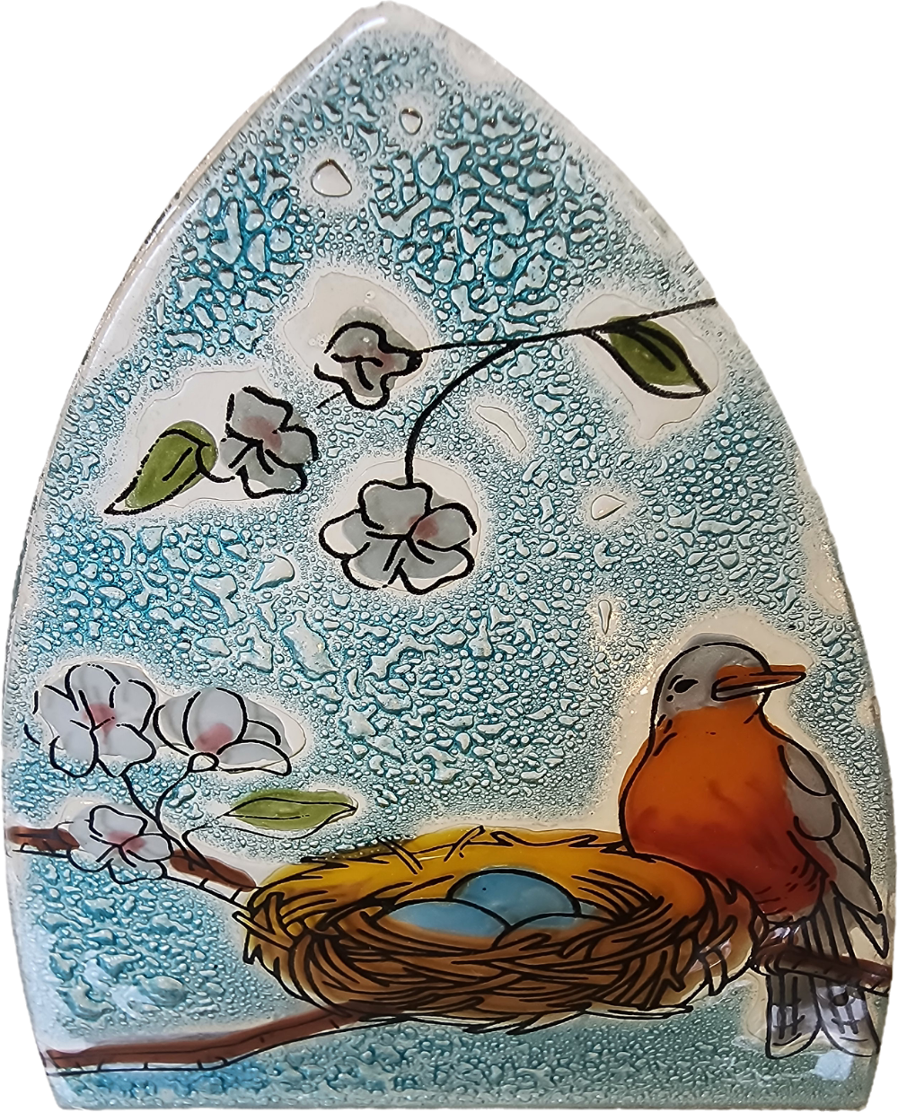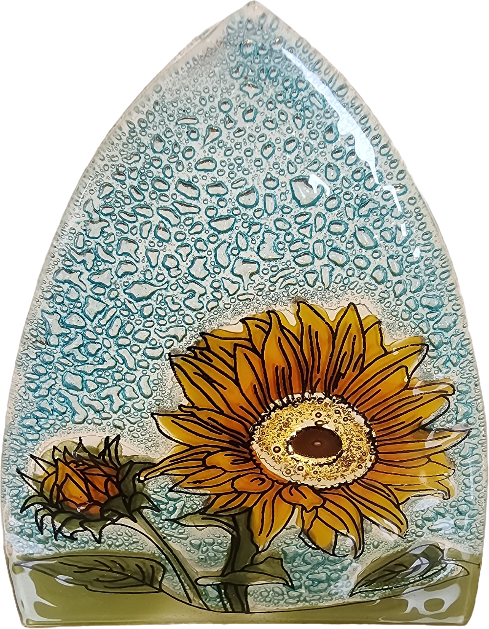 These gorgeous hand crafted night lights are made from recycled glass and fused together to create beautiful scenic pictures and textured bubbles in the glass. It comes complete with a UL rated plug and a bulb.