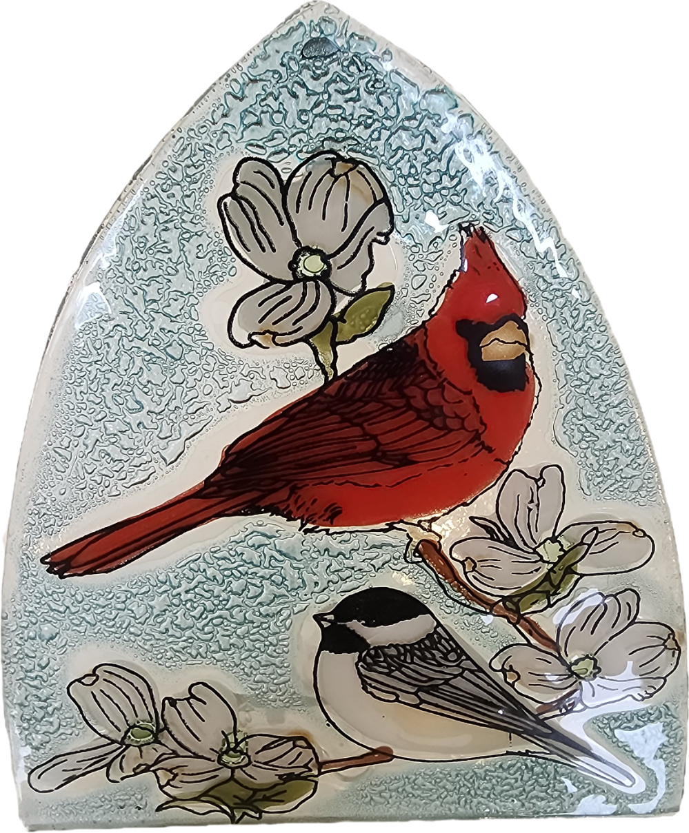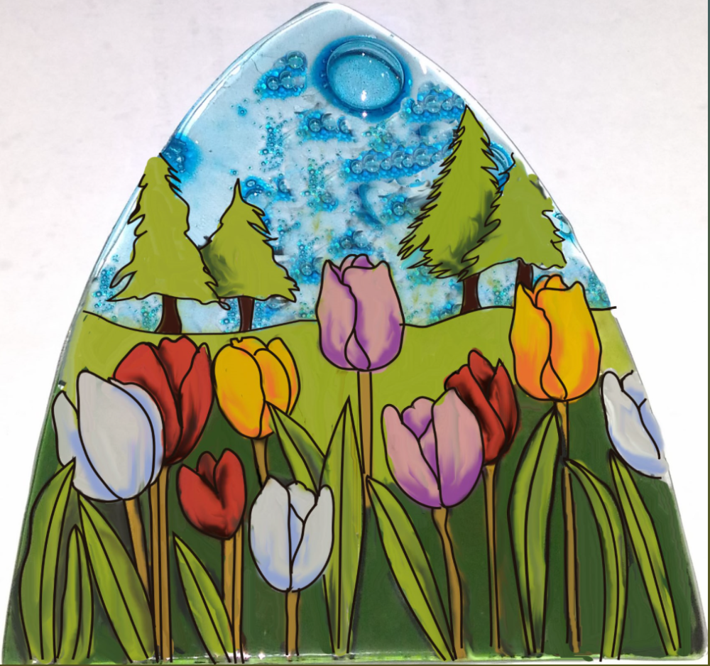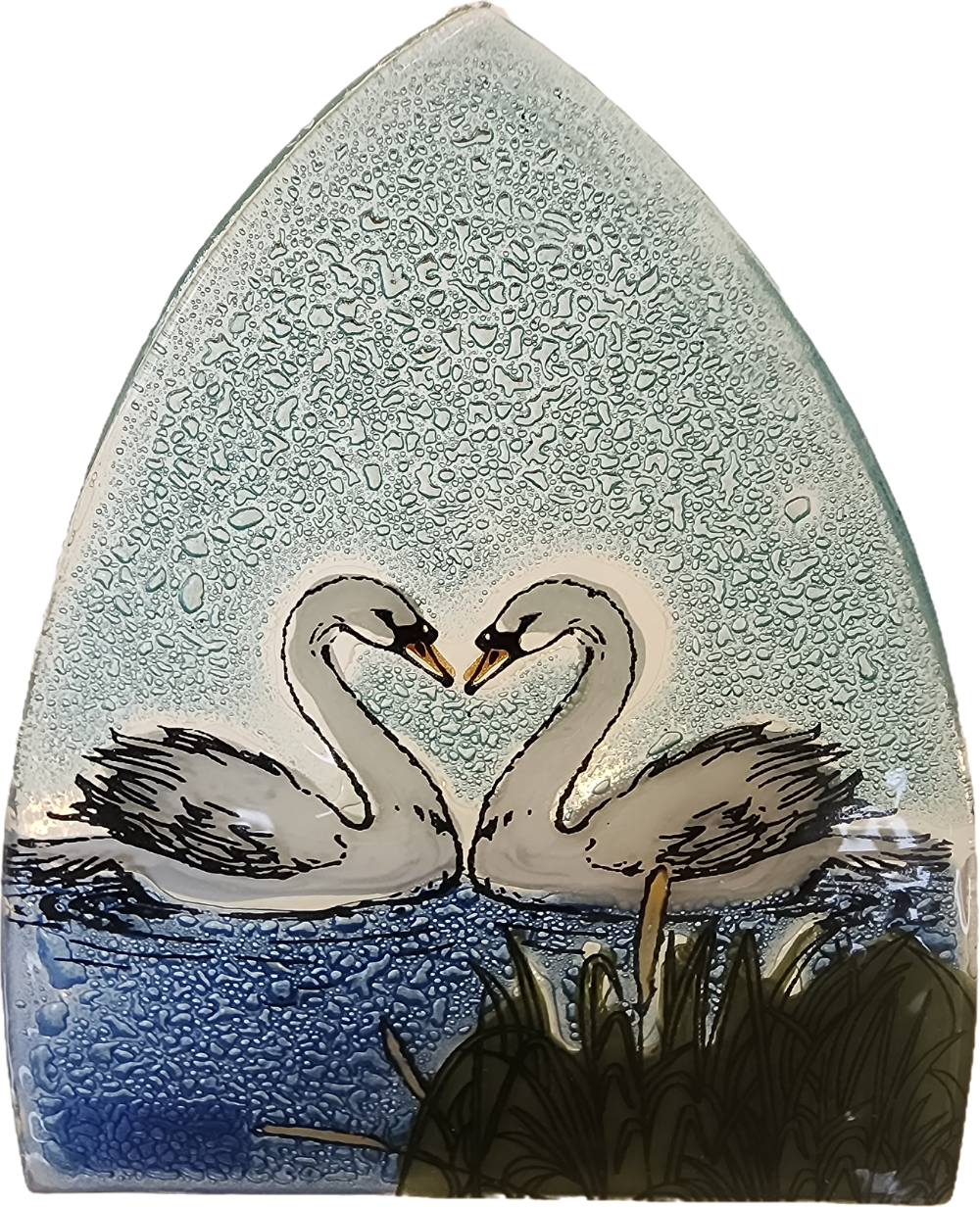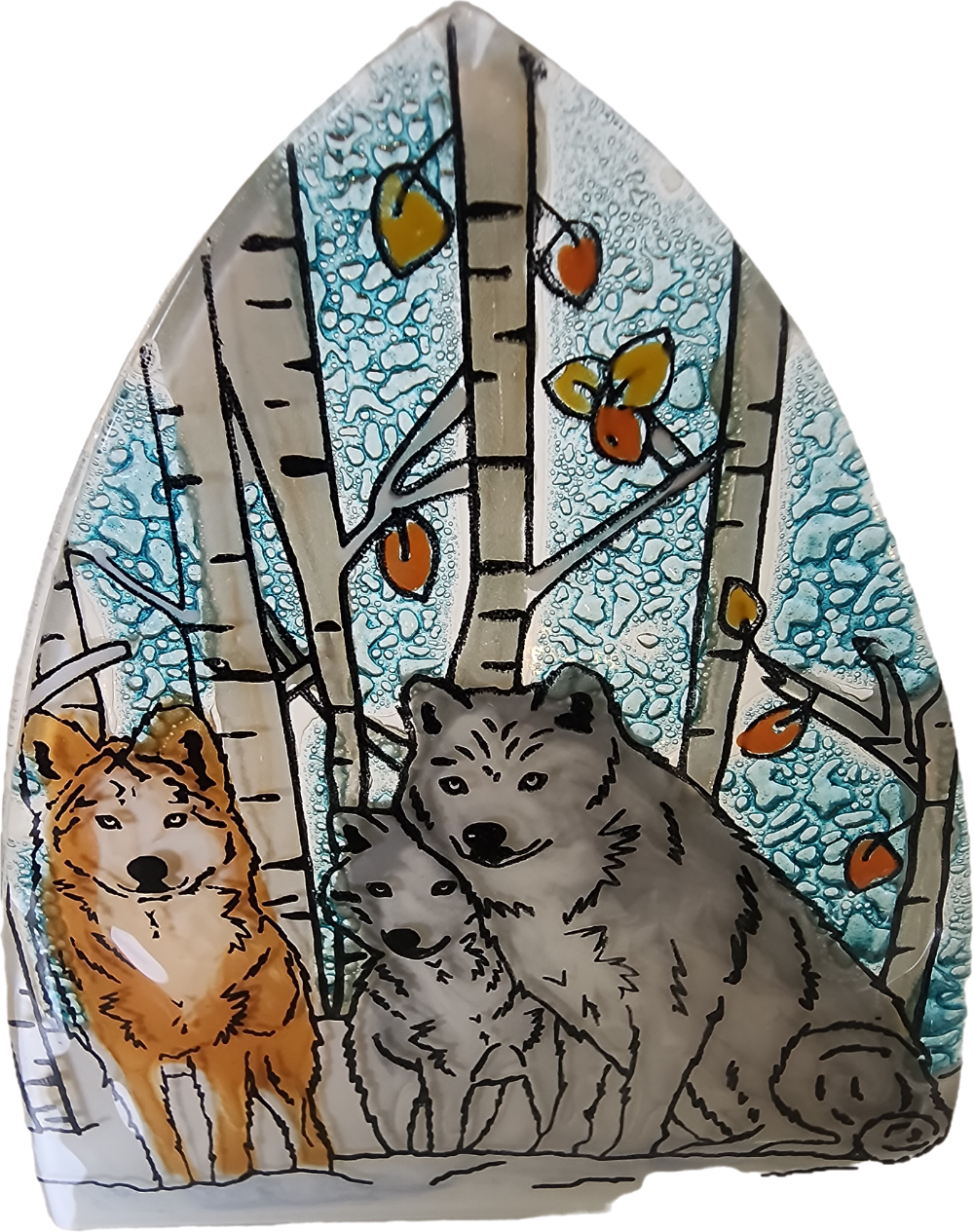 These gorgeous hand crafted night lights are made from recycled glass and fused together to create beautiful scenic pictures and textured bubbles in the glass. It comes complete with a UL rated plug and a bulb.