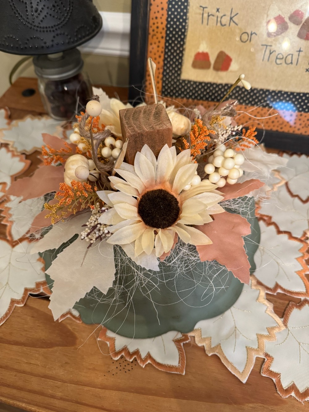 Grubby Green Bundt Cake Pan Pumpkin with fall florals.