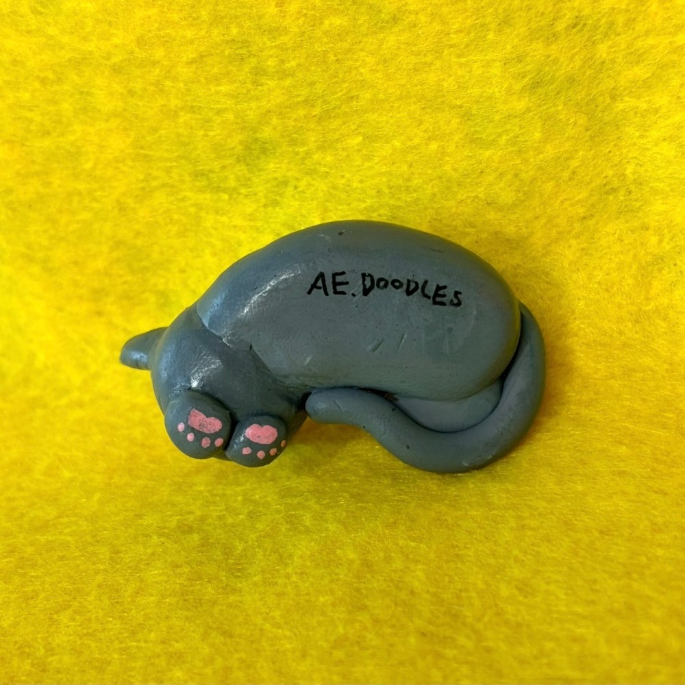 Fully sculpted by hand, hand painted, Cheeky Cat Original! Coated with resin for their protection.