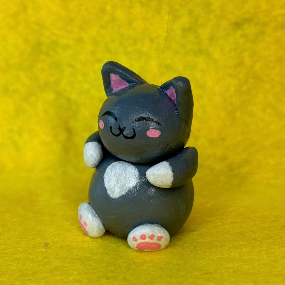 Fully sculpted by hand, hand painted, Cheeky Cat Original! Coated with resin for their protection. He's sleepy.