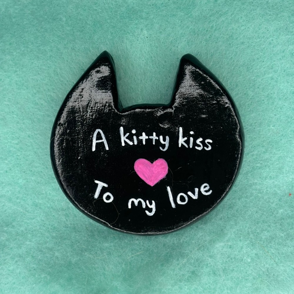 A kitty kiss! It's a small piece of joy to gift to a loved one. Completely handmade.