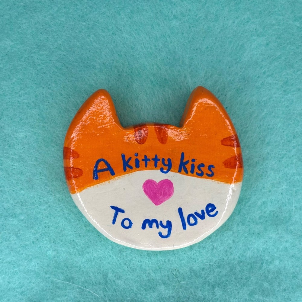 A kitty kiss! It's a small piece of joy to gift to a loved one. Completely handmade.