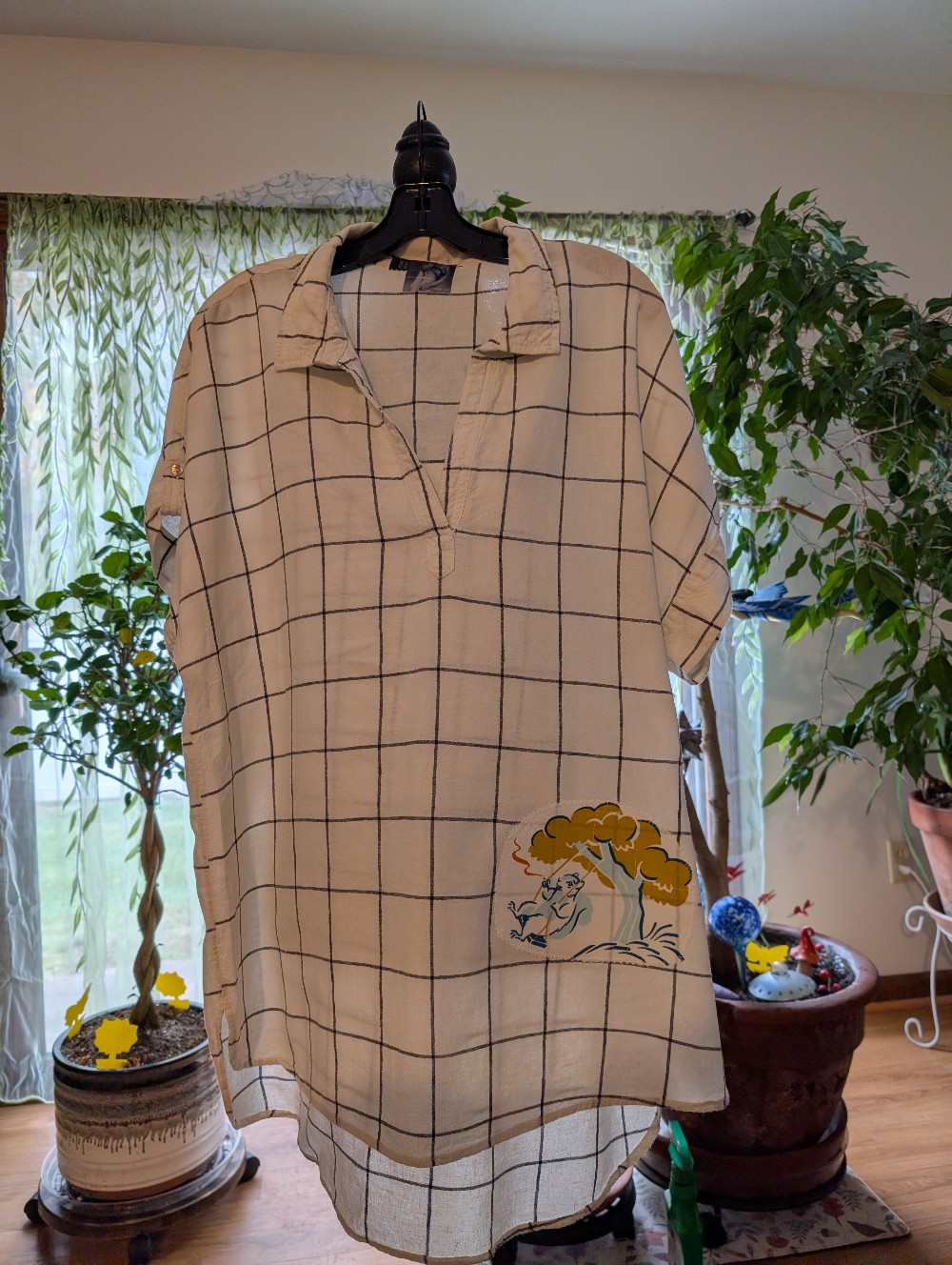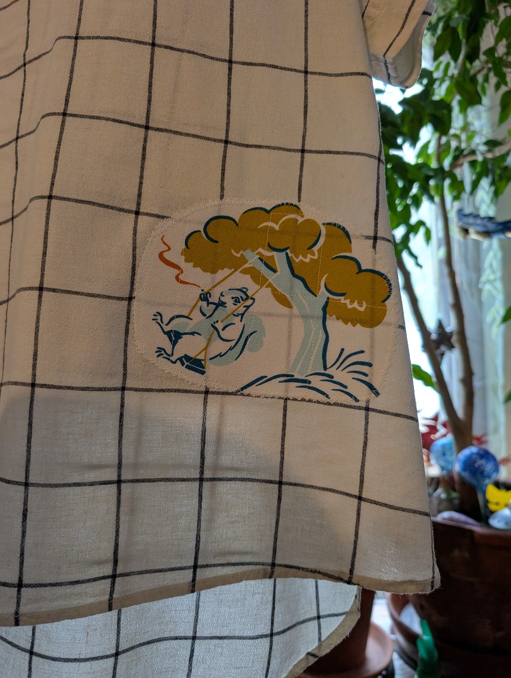 Upcycled size 1x unisex cotton shirt applique of funny animals smoking